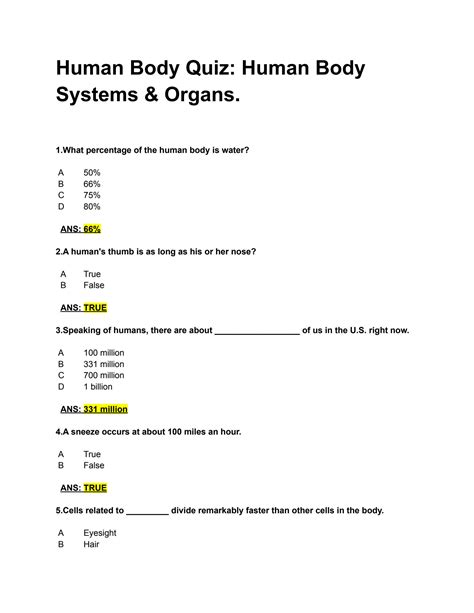 Download human body questions Kindle Editon